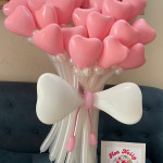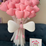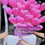- Bó hoa: Bó hoa được tạo hình từ những quả bóng bay hình trái tim màu hồng nhạt, xếp khít nhau tạo thành một khối hình tròn đầy đặn và bắt mắt.