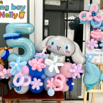 - Bóng bay hình Cinnamoroll: Trụ bóng được trang trí bằng bóng bay hình Cinnamoroll, tăng thêm sự đáng yêu và sinh động cho không gian bữa tiệc.
