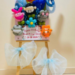 - Nơ trang trí: Bảng hoa được trang trí thêm 2 chiếc nơ lớn màu trắng viền xanh da trời, tăng thêm phần đáng yêu và sinh động.