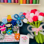- Hoa bóng bay đa dạng: Bảng hoa được kết hợp từ nhiều loại hoa bóng bay khác nhau, bao gồm hoa bóng bay hình trái tim, hoa bóng bay hình ngôi sao, hoa bóng bay hình bông hoa và các loại bóng bay tròn với màu sắc tươi sáng.