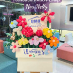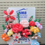 - Chất liệu: Bong bóng, kệ gỗ, khung nền, các vật liệu trang trí khác.